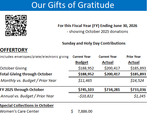 Our special envelopes for our parish offertory for the 2025-2026 calendar year are listed below. We appreciate your generosity.
